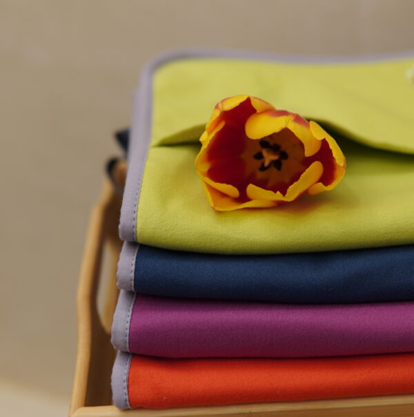 Dvielis izgatavots no kvalitatīvas mikrošķiedras, kas atbilst OEKO-TEX STANDARD 100 prasībām, nodrošinot, ka audums ir pārbaudīts uz kaitīgām vielām un ir drošs saskarē ar ādu. Izturīgs materiāls saglabā savu formu un īpašības arī pēc vairākkārtējas mazgāšanas.